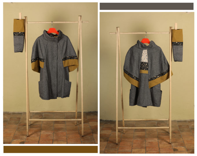 Voici la cape »Mani » portée avec ou sans ses manches amovibles et un bandeau de la collection patchwork…parfait pour jongler avec les différentes températures extérieurs et vous accompagner pendant les intersaisons.